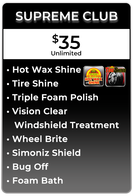 Buy any Ultimate or Supreme Wash and get a FREE Express Wash (Valid for 7 days), Microfiber towel, and air freshener! Vacuums are free with the purchase of a wash. To learn more about a product, select the image!